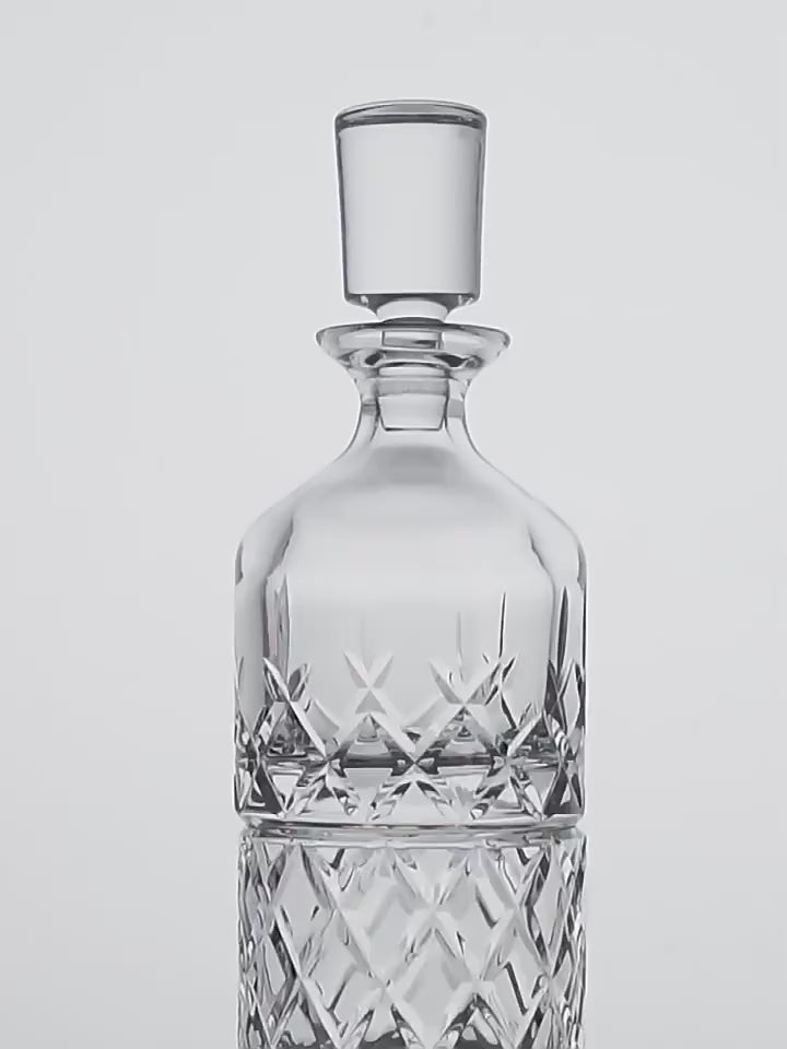 This set comprises a beautifully designed whisky decanter and elegantly shaped glasses, each crafted with a traditional cut crystal design. The crystal’s exceptional clarity magnifies the amber hues of whisky, while the glasses' stackable design enhances both usability and display.