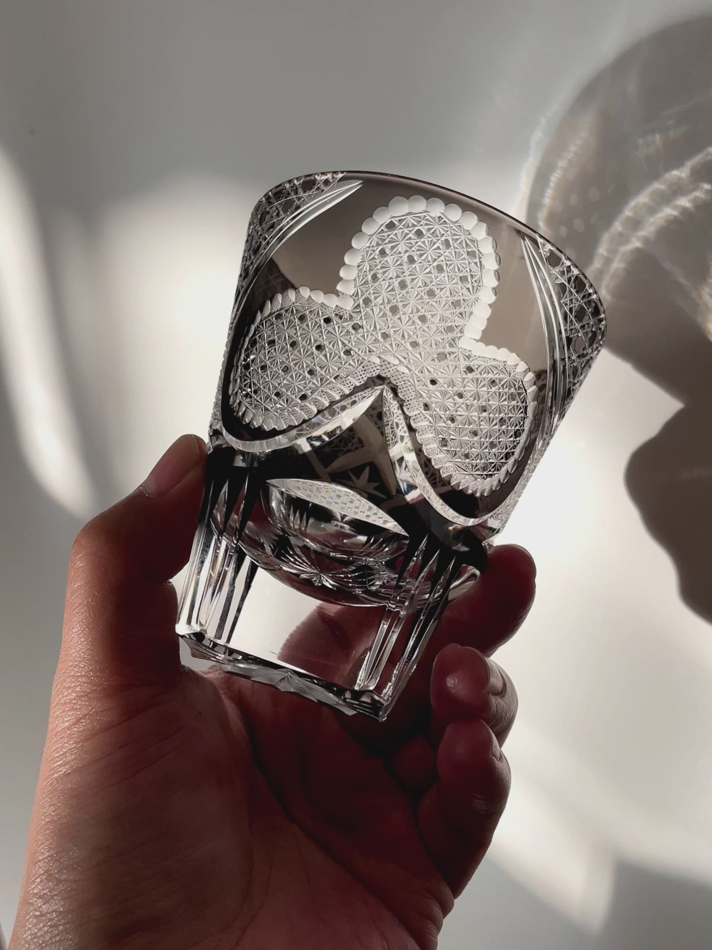 Introducing the Edo Kiriko Handcrafted Club Crest Whisky Glass, the latest gem in our prestigious Poker-themed series. This exceptional whisky glass, featuring the distinguished Club Crest pattern, seamlessly marries traditional craftsmanship with contemporary elegance. Symbolizing a playing card suit and embodying a sense of unity and sophistication, each glass is a testament to the artistry of Edo Kiriko.