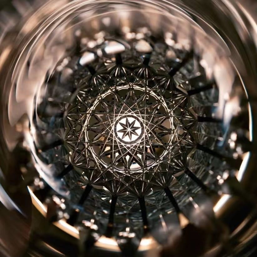 The Edo Kiriko Multi-Color Edition Dazzling Whisky Glasses is a traditional Japanese glassware piece made from cut glass. The design features diamond-shaped patterns cut into the surface of the glass, giving it a unique and elegant appearance. These glasses are typically used for serving whisky but can also be used for other types of alcoholic beverages. They are handcrafted by skilled artisans and are considered a valuable collectible item.
