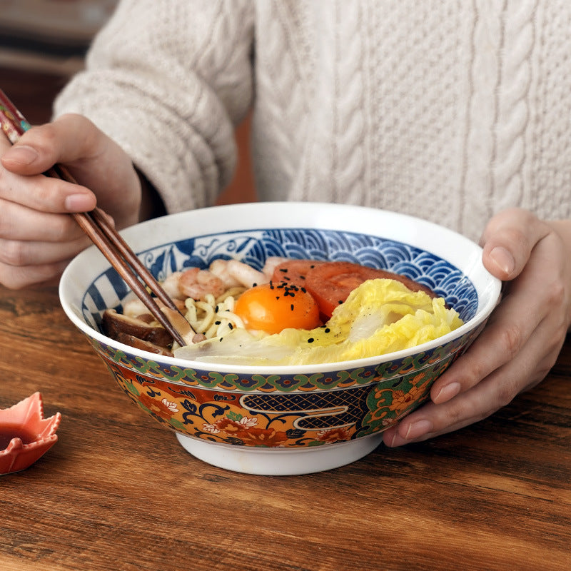 Japanese Mino Ware Imari Series Handcrafted Imperial Ramen Bowl