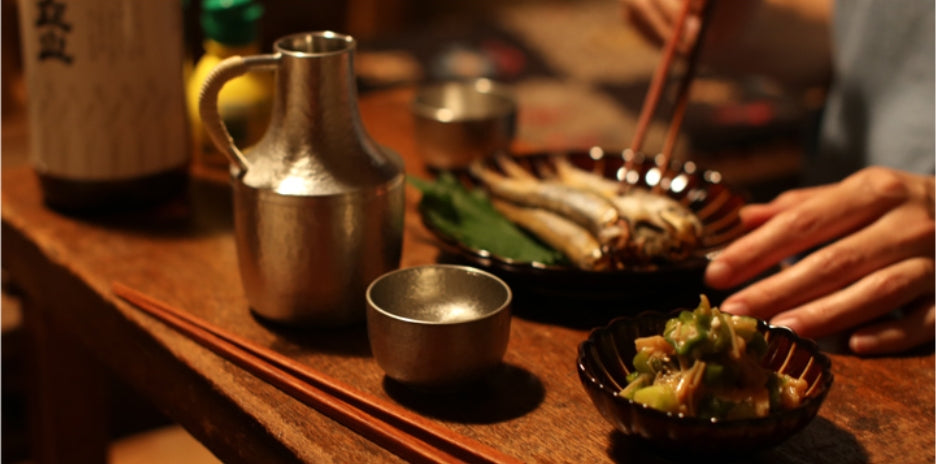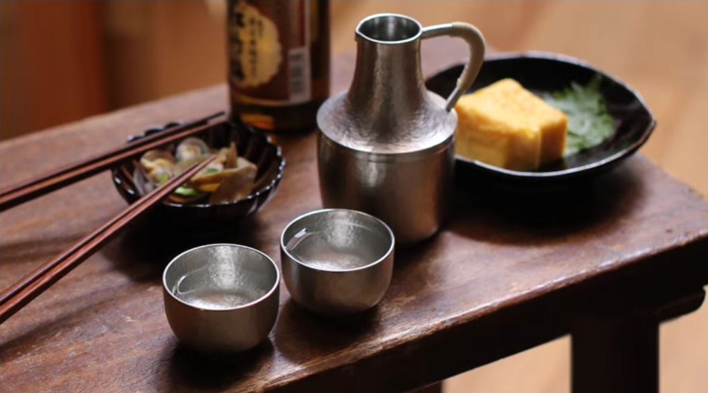 With excellent heat and cold retention, tinware keeps drinks at the ideal temperature longer. Chilling it in the refrigerator enhances its cooling effect, perfect for sake, beer, or drinks on the rocks.